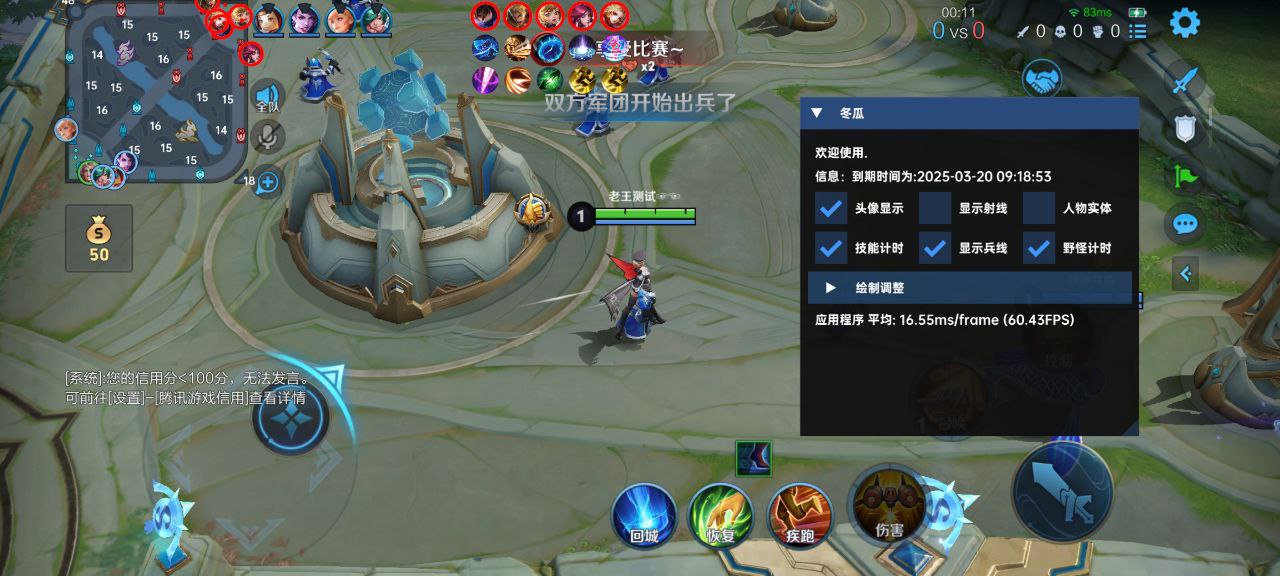 【功能:掩体变色,上帝视角,野怪计时,技能计时,漏视野射线变红,绘制血量,回城绘制,兵线绘制,全奔绘制功能稳到猝死 ,主播同款,巅峰赛过直播 。】